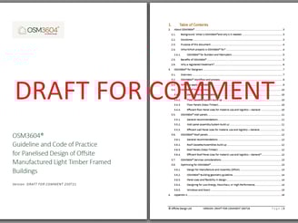 This document sets out the OSM3604® Guideline and Code of Practice for panelised design of off-site manufactured light timber framed buildings.